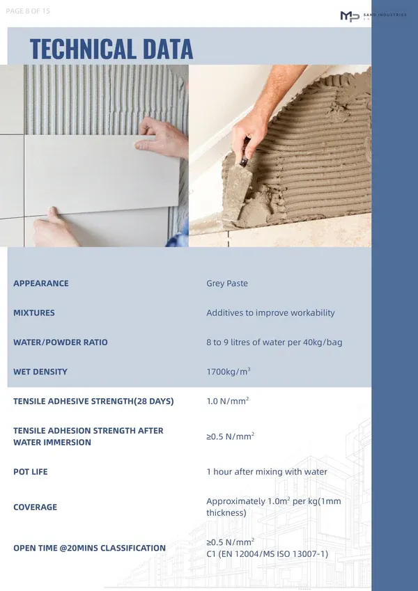 + Free ShippingTile Fix 黏磚灰 is a polymerized, single-component dry-set tile adhesive designed for thin-bed wall and floor tiling. It is cement-based and water-resistant, making it suitable for both interior and exterior applications.